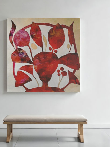 All of Maria’s paintings are original acrylic artworks, created in multiple layers on heavy jute canvas. Her art is deeply rooted in her own imagination, and each piece feels like a journey of discovery — an exploration through color, form, and emotion.